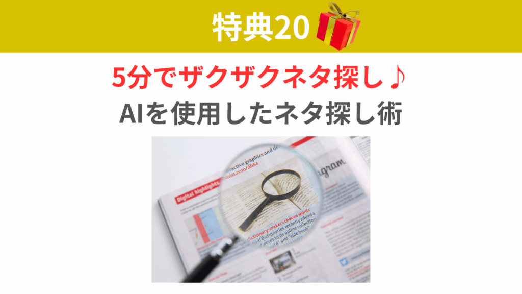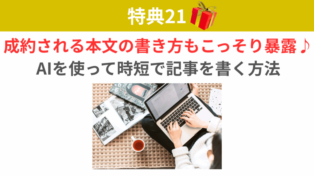 でも、この特典を見れば、AIでどんな質問をして、どの情報を記事にまとめていけば良いのかがピンポイントで分かるようになっています。