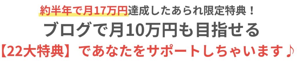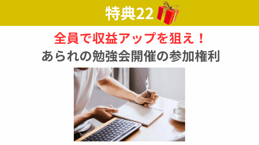私の22大特典では、少しでも早く稼げて、楽に実践できるような私なりの特典を考えさせていただきました。